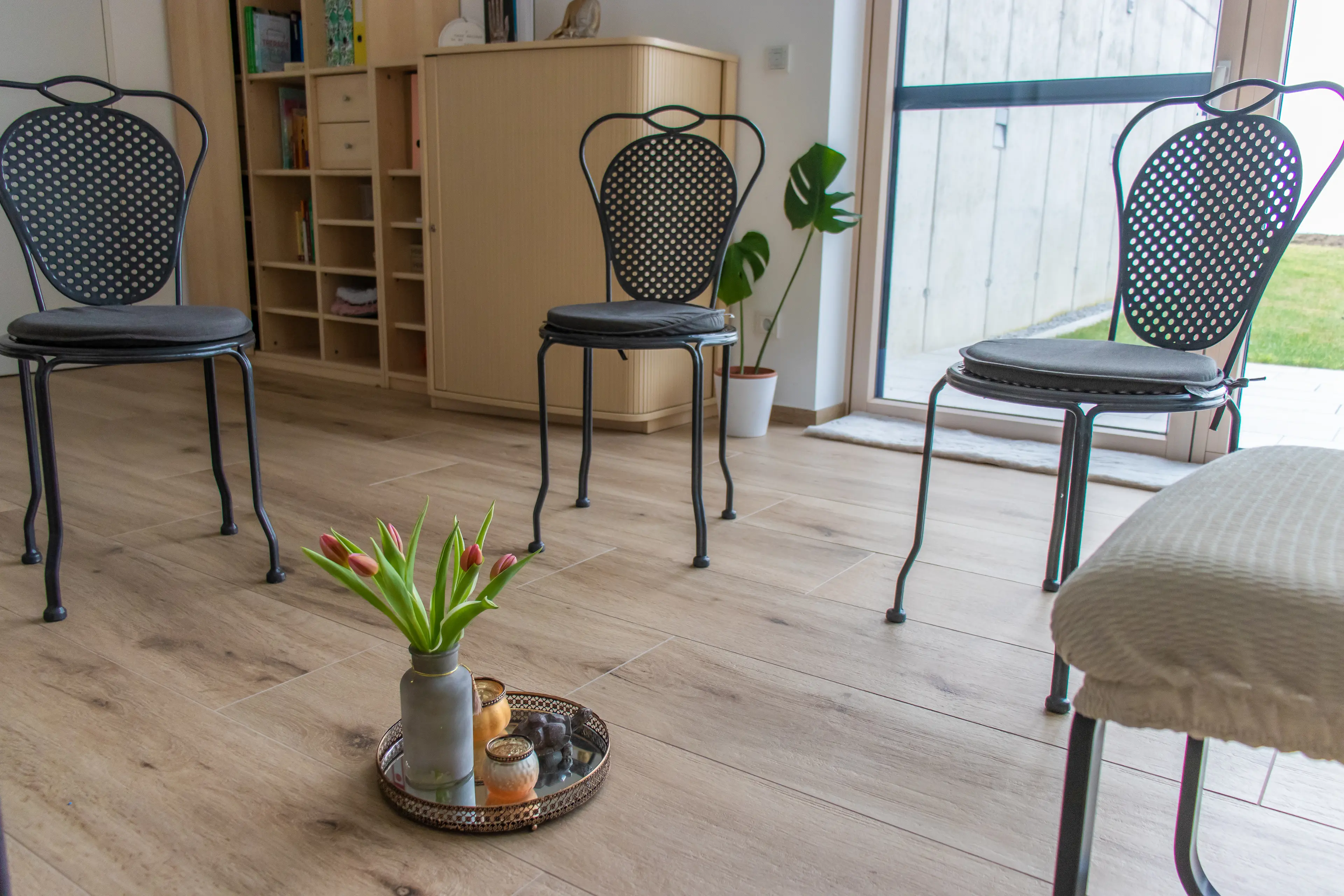 Mein Raum bietet genügend Platz für Gruppen. Die Gruppensettings finden in einem geschützten, vertrauensvollen Rahmen statt.